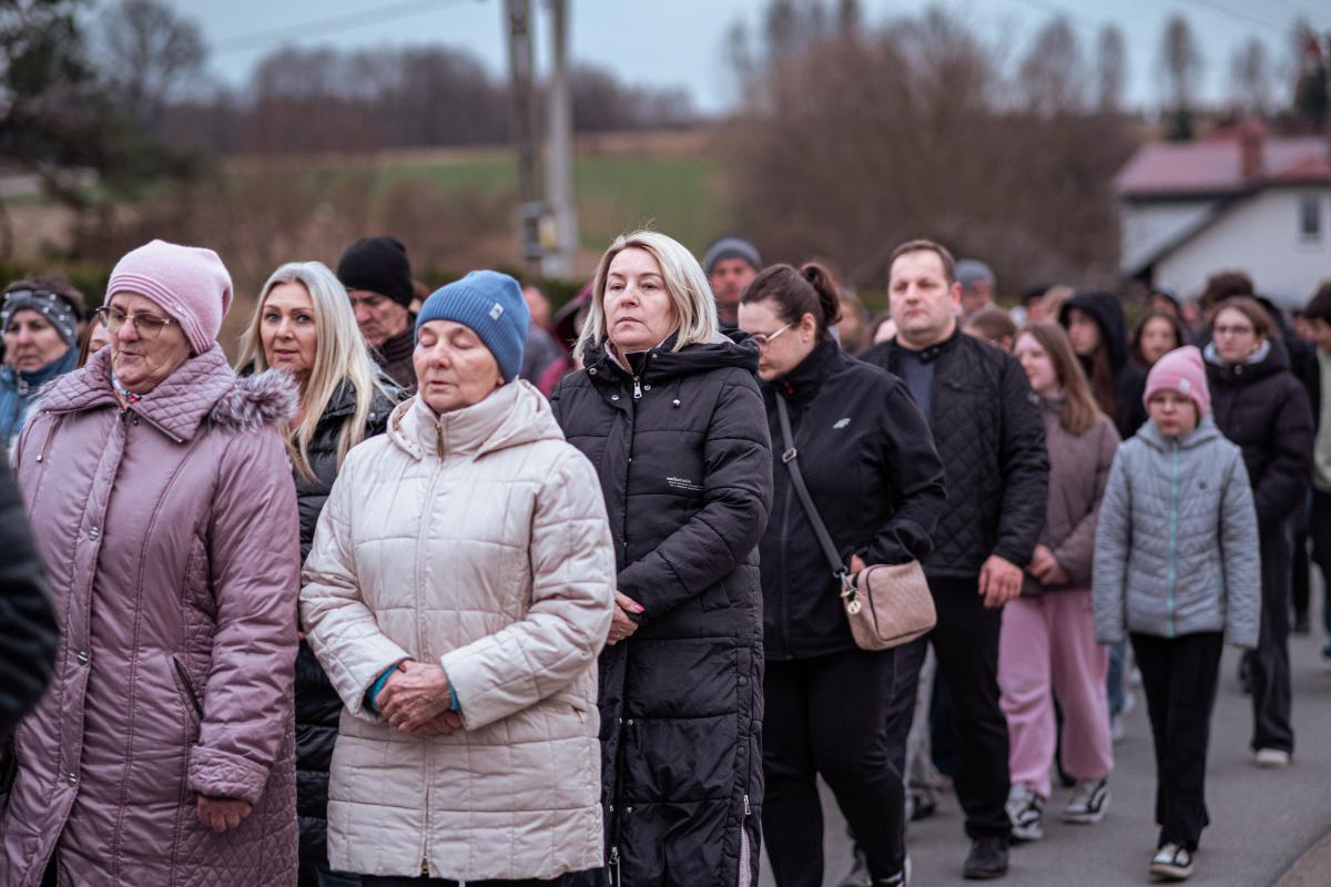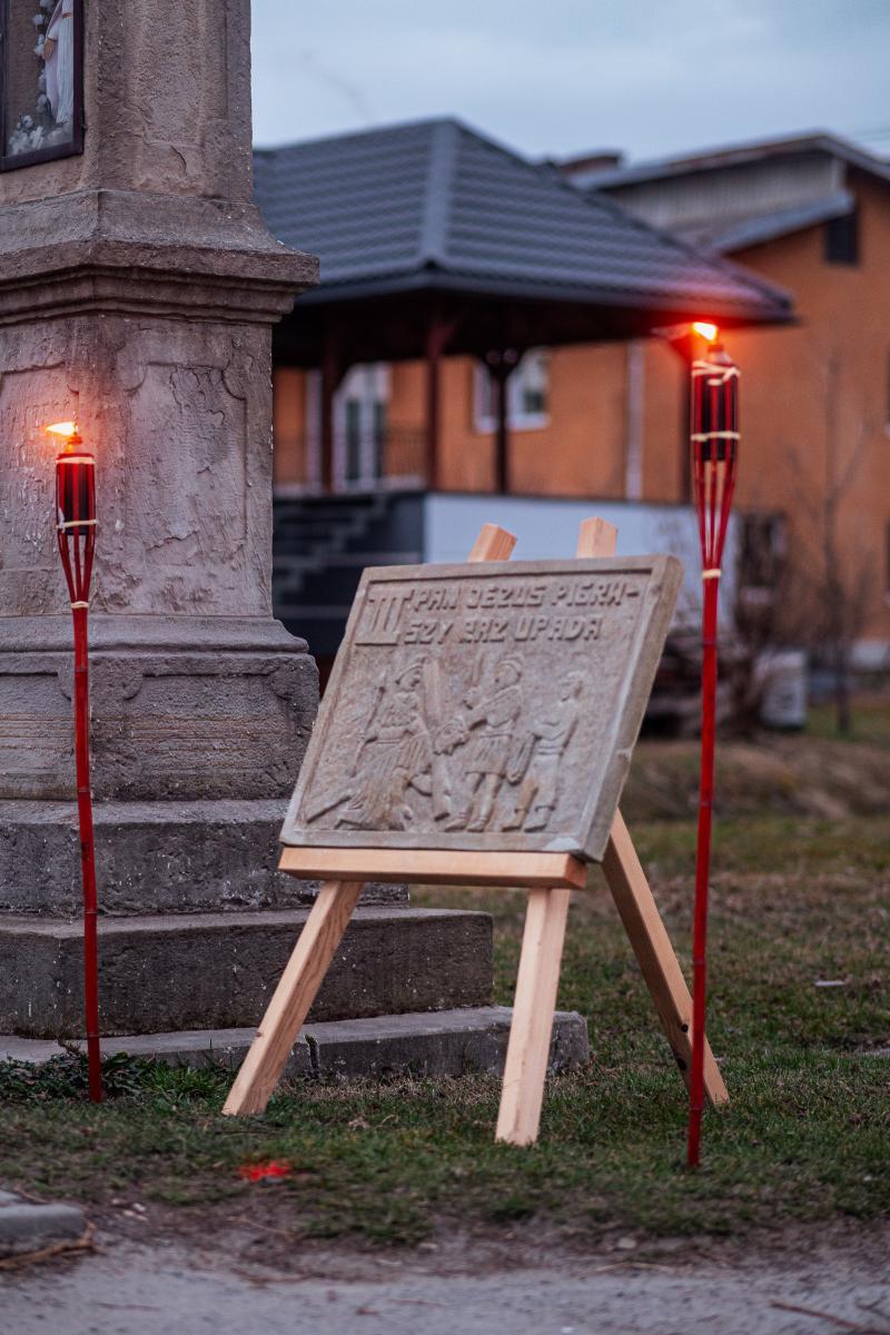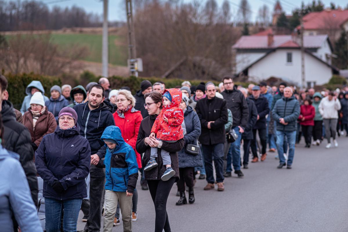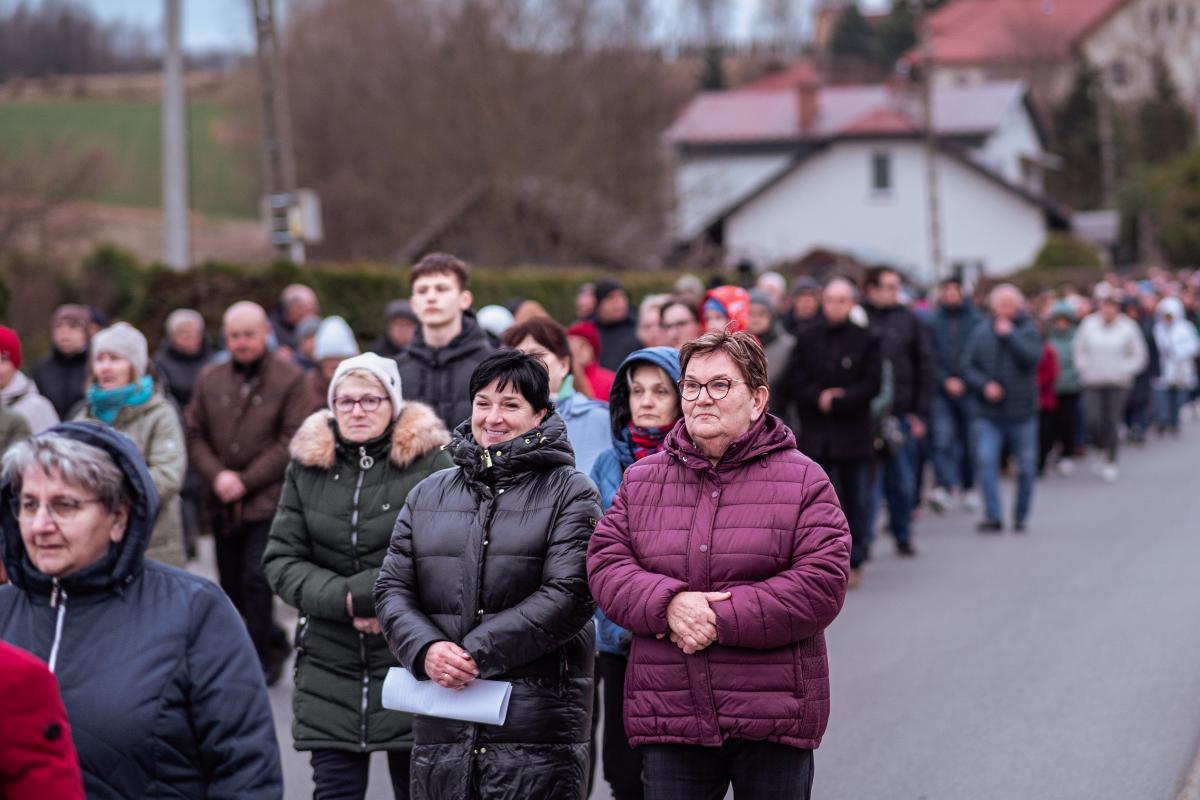 1 kwietnia, w pierwszy piątek miesiąca, po dwuletniej przerwie spowodowanej pandemią, mimo niesprzyjającej pogody, miała miejsce w naszej parafii droga krzyżowa ulicami naszej miejscowości. Wydarzenie rozpoczęła wspólna Eucharystia sprawowana przez Księdza Proboszcza. Po jej zakończeniu wyruszyliśmy procesyjnie z krzyżem, aby rozważać mękę naszego Zbawiciela. Jak co roku, w przeżywaniu tajemnic związanych z pasją Chrystusa, pomogły nam stacje drogi krzyżowej wyrzeźbione w kamieniu przez naszego parafianina Tadeusza Śnieżka. Jak podkreślił podczas zakończenia Ksiądz Proboszcz – wymowne i dające do myślenia jest brak ostatniej i przedostatniej stacji ponieważ były one wykonywane u samego kresu życia autora. Jest to dla nas wezwanie do refleksji nad własnym życiem i jego przemijaniem.