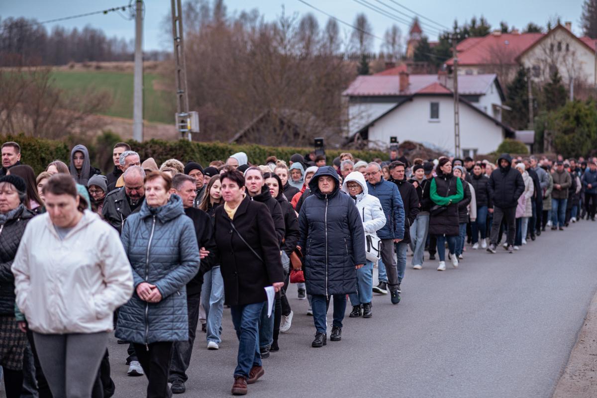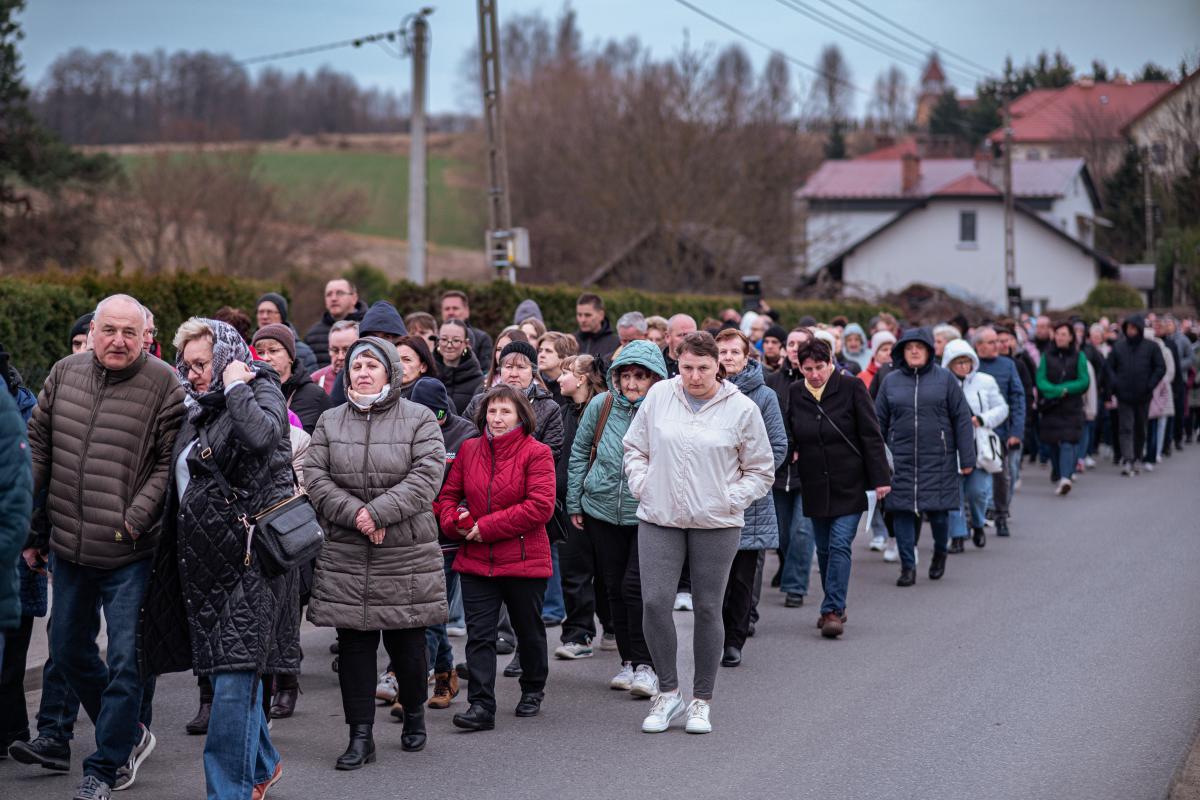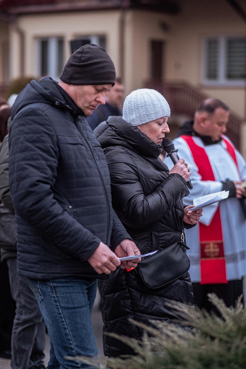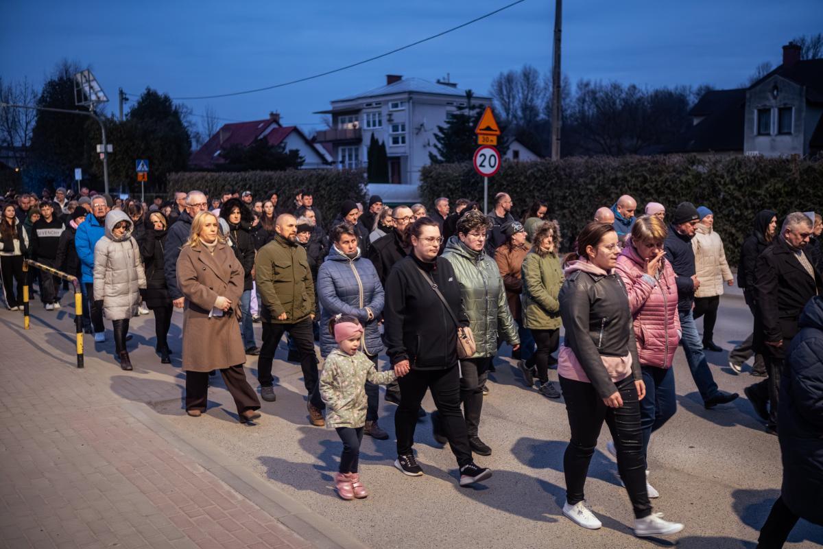 1 kwietnia, w pierwszy piątek miesiąca, po dwuletniej przerwie spowodowanej pandemią, mimo niesprzyjającej pogody, miała miejsce w naszej parafii droga krzyżowa ulicami naszej miejscowości. Wydarzenie rozpoczęła wspólna Eucharystia sprawowana przez Księdza Proboszcza. Po jej zakończeniu wyruszyliśmy procesyjnie z krzyżem, aby rozważać mękę naszego Zbawiciela. Jak co roku, w przeżywaniu tajemnic związanych z pasją Chrystusa, pomogły nam stacje drogi krzyżowej wyrzeźbione w kamieniu przez naszego parafianina Tadeusza Śnieżka. Jak podkreślił podczas zakończenia Ksiądz Proboszcz – wymowne i dające do myślenia jest brak ostatniej i przedostatniej stacji ponieważ były one wykonywane u samego kresu życia autora. Jest to dla nas wezwanie do refleksji nad własnym życiem i jego przemijaniem.